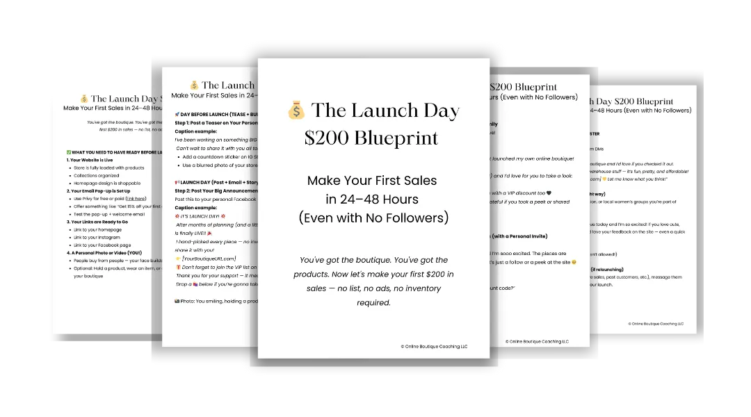 You've got the boutique. You've got the products. Now let's make your first $200 in sales — no list, no ads, no inventory required.